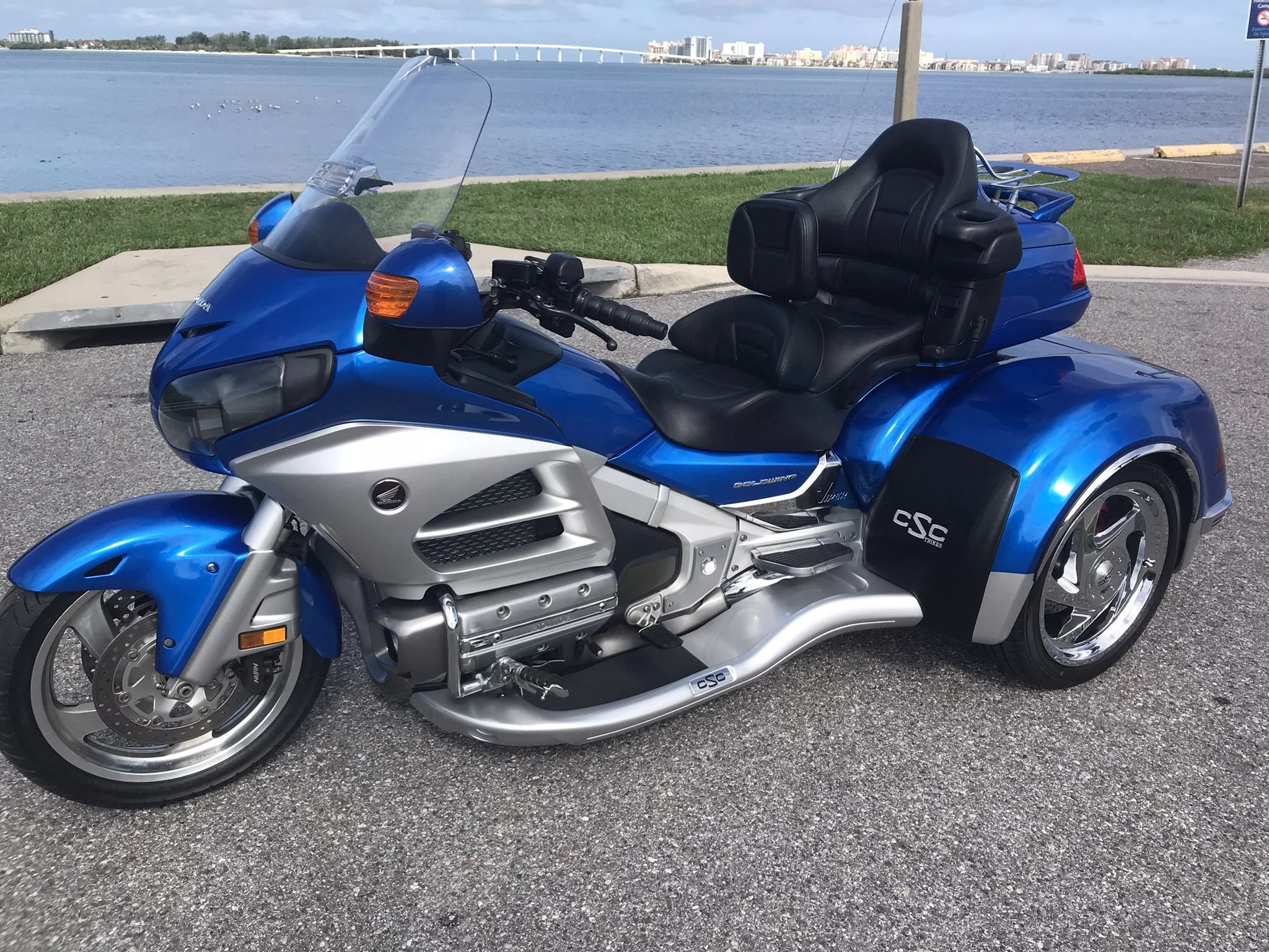 Impressive 2013 Honda Goldwing GL1800 with a brand new 2024 CSC Viper Conversion in Blue/Silver with 57,772 miles on it. Serviced with Amsoil Synthetic Oil, inspected completely, road tested ready to go!